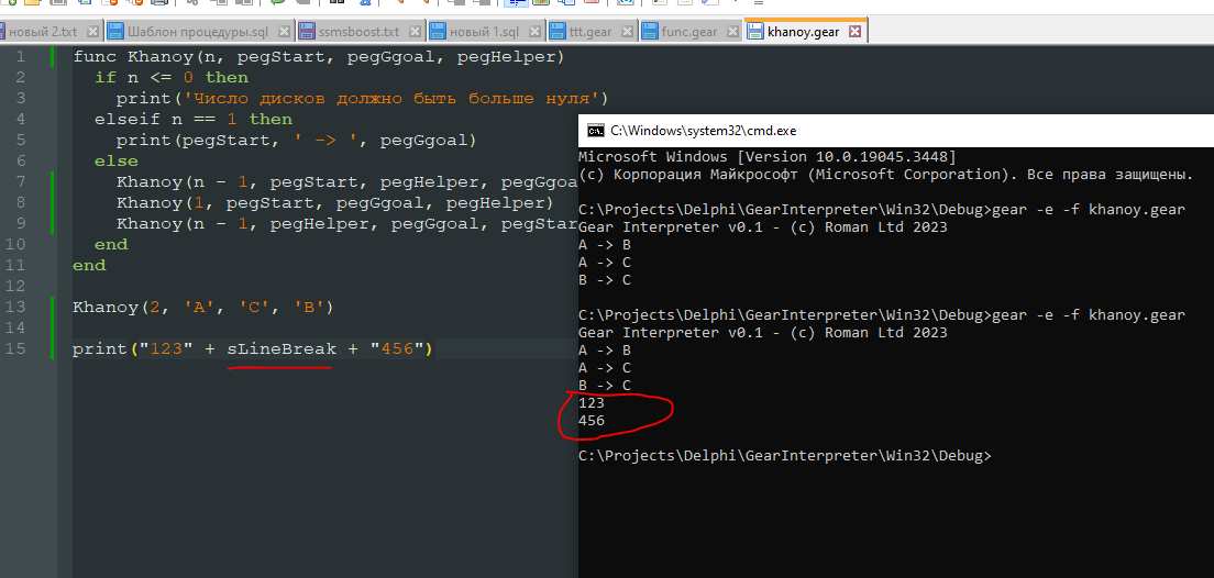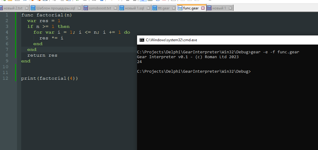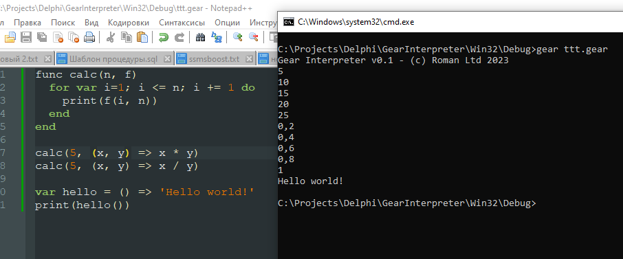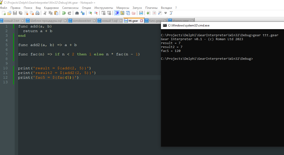 Добавил "оболочку" ключи командной строки для интерпретации файлов, если gear.exe без параметров, то программу вводить с консоли. ... |