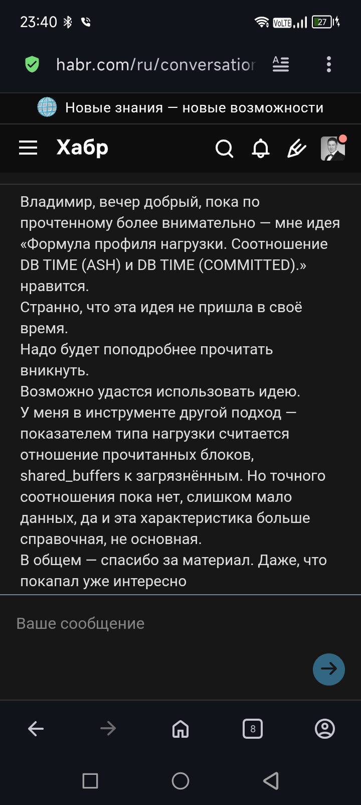 Скоро ожидается выход новой моей статьи на Хабр и выступление на ближайшем PgConf 2026. Тема весьма интересная, это фактическое определение профилей нагрузки БД. У вас есть шанс назвать формулу своим именем и прославится на весь Мир на уровне Кодла или Ларри Элисона. Мы пока сами на докопали, но куда копать я расскажу на конференции. ![]() ... |