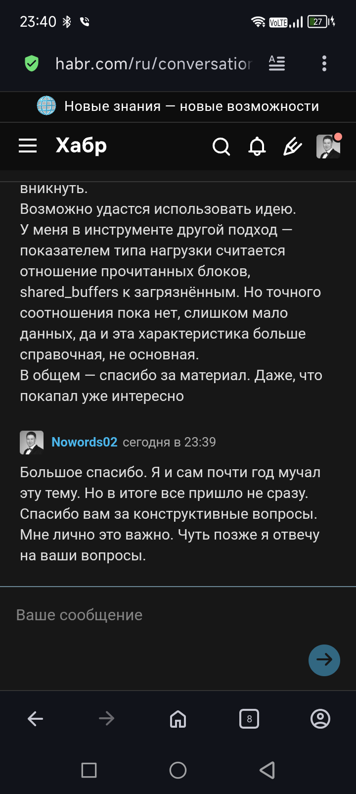Нет это не это. Смотри именно ссылки на Хабр. Других нет. Это свежая статья, дня 2 наверное ей. ![]() https://habr.com/ru/companies/vtb/articles/819133/ ... |