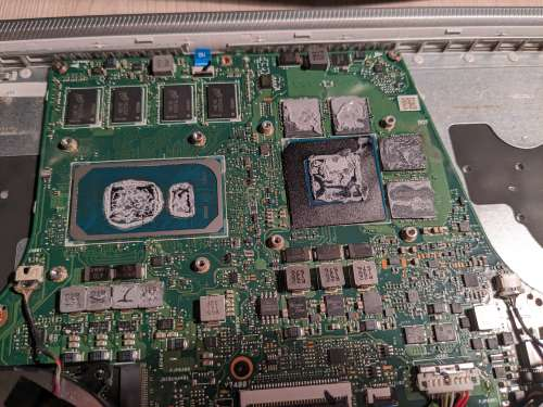 у меня для тебя плохие новости в твоем ноутбуке используются на чипах памяти и vrm проца используются жидкие термопрокладки, термопастой их не заменить,ищи теперь где купить жидкие термопрокладки ... |