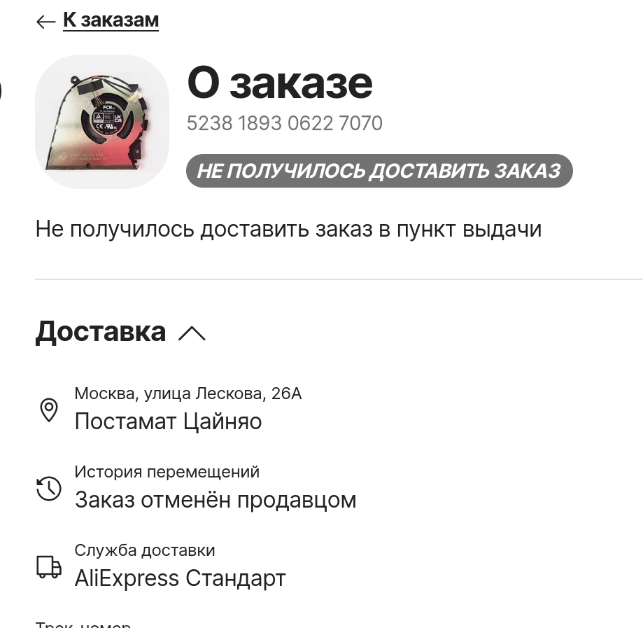 продавец отменил заказ спор завести не дает вентилятор уже не останавливаясь гудит новый заказ обещают 4ноября ... |
