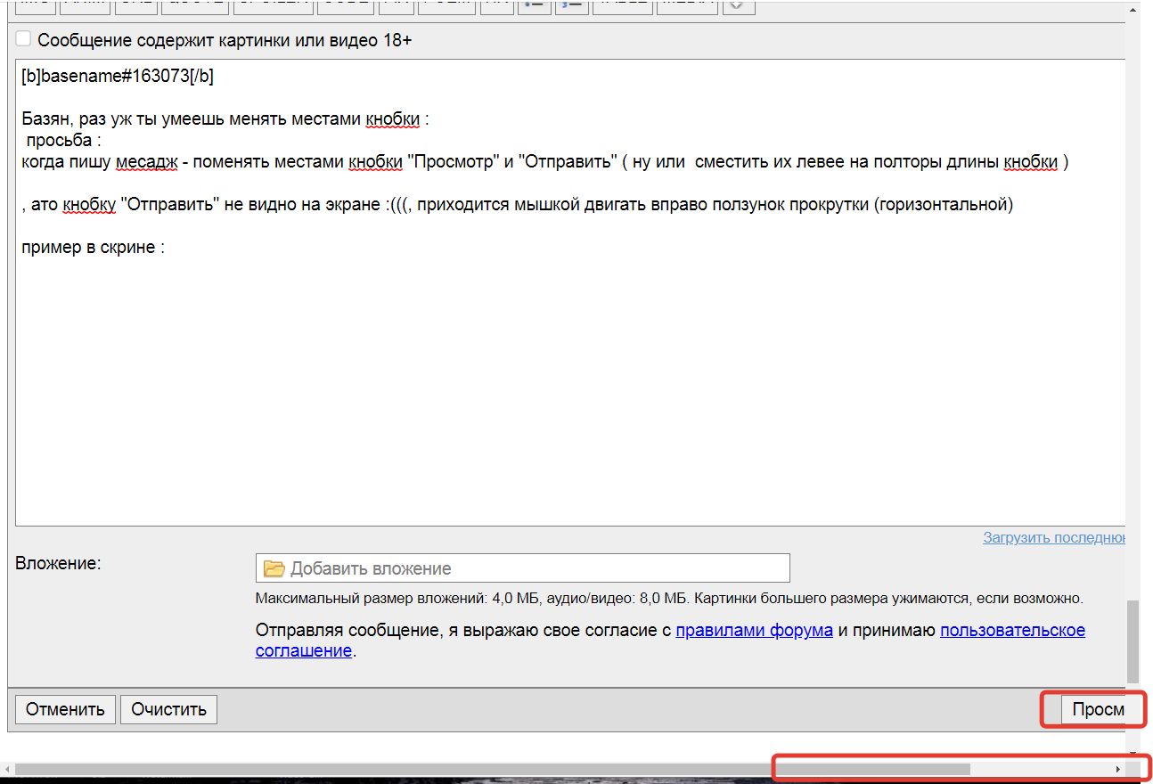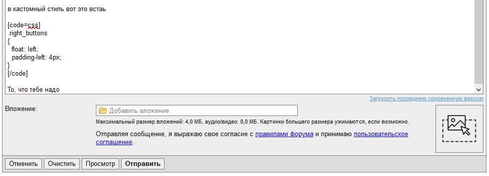У меня если приложить 3 картинки в сообщение. Происходит тайм аут , пишет про 60 секунд. У дедофорума такого не было. По одной картинке все хорошо. Надо увеличить хотя бы до 180 секунд. ... |