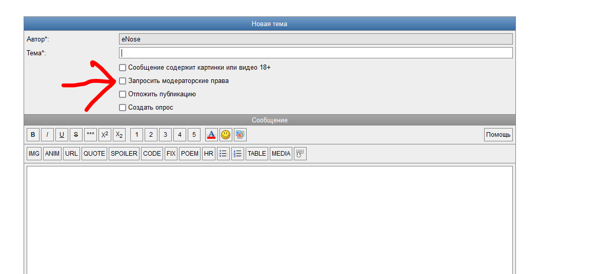 s62 [игнорируется] Либо при создании темы есть крыж, либо промтым сообщением (лучше с уведомлением модерам с собаками) или просто пожалуйся на своё сообщение и там напиши хотелку стать модером. ... |