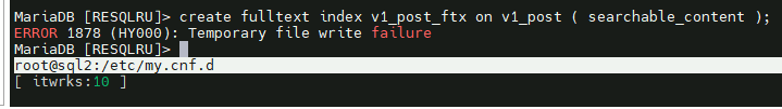 Надо удалить индекс, накатить патч и создать индекс. ![]() Ну не накатывается индекс, ну будут тормозить запросы, но чтобы всё мёртвое... это же мария дб, не куй собачий ... |