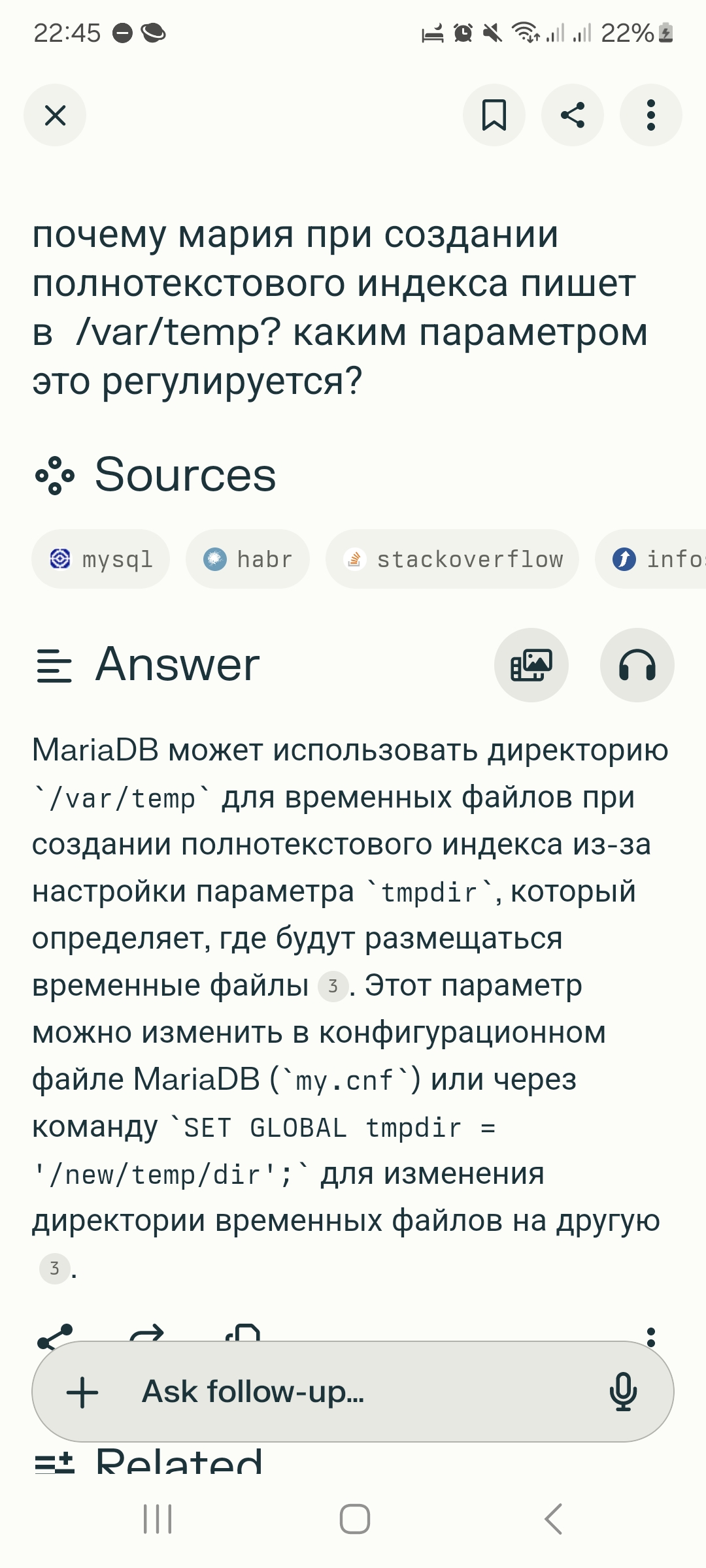 Белоруский проект. Перплексити. Иногда неплохо ищет. ![]() у мну остался один-два-три непонятный вопрос : 1. когда Базя делал накат новой версии Сруля, он делал бэкап? и создание бэкапа прошло успешно? 2. хуйня произошла во время обновления таблицы (основной, с мессагами? ) 3. ты прислушался к совету Ёжика? ( на будущее) ( по поводу добавления полей в главную таблу? ) ... |