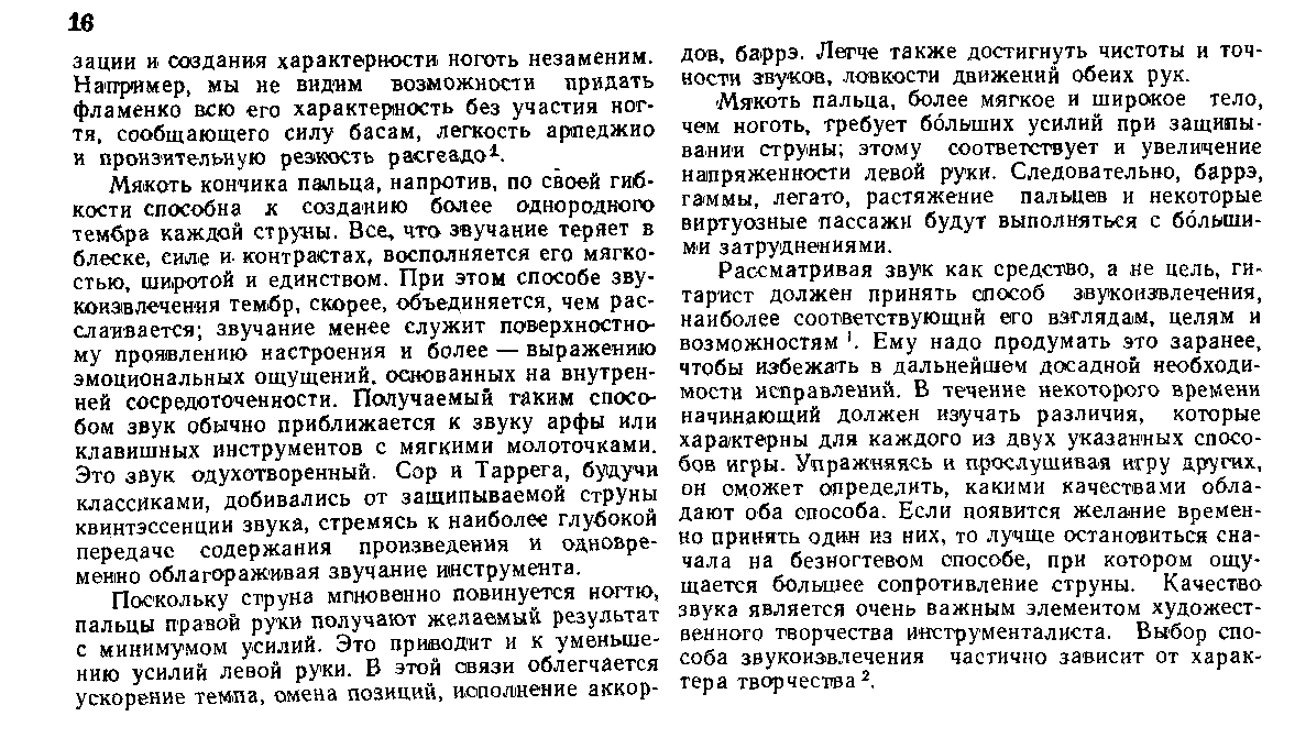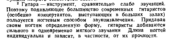 XEugene [игнорируется] Может знаешь, есть такой самоучитель игры на 6-струнной гитаре Эмилио Пухоля, довольно старый. Он довольно специфический, там куча упражнений и очень мало пьес, в основном сочиненные Пухолем для этого самоучителя. И вот там в начале есть красивое, слегка наверное пафосное, описание разницы игры ногтями и без ногтей. И там же примечание переводчика или русского редактора. Не знаю, насколько он прав, некоторые места - насчет мимолётных настроений и т.п., по-моему даже слегка смешные, но что-то может быть или наверное в этом есть. ... |