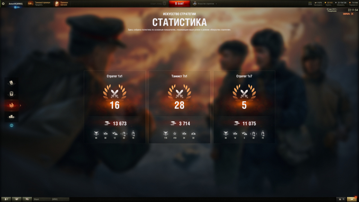 Удивительно, недрочерский режим был. аж за 2500 бон. за такие деньги в ранговых, например, реально стул порвать надо, а тут ненапряжно играешь в 3-4 боя за танкистов, 3-4 боя за стратега. Никаких докупок за донаты и оно ещё и фармит!!! Самое интересное в данном режиме, наверное, стратег 1 против 1. Играть за танкистов против стратега - обычный рандом почти. Играть за стратега против танкистов может быть сложновато, так как ты управляешь ботами, а играешь против людей. Хотя ВГ ботов подкрутило и боты там весьма злобные и скилловые. ... |