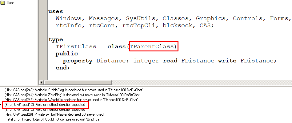 это только в том случае, если оба класса - предок и потомок - находятся в одном юните если будут находиться в разных - такое не сработает https://docwiki.embarcadero.com/RADStudio/Alexandria/en/Properties_(Delphi)#Property_Overrides_and_Redeclarations внутри одного юнита всё доступно, а если разнести по разным - то увы И это не наследование, как у тебя написано, просто компилятор видит поля класса в рамках одного юнита TParentClass описан в другом юните ... |