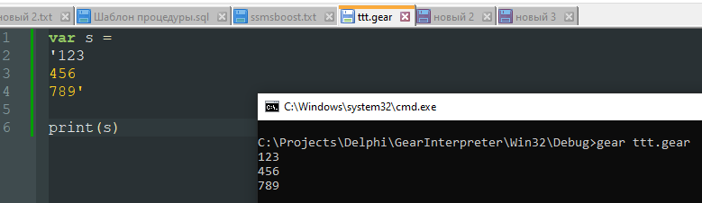 Затем, что в питоне одиночный апостроф - это кавычки. str := ''' 123 456 789 '''; А обычная строка была a := 'str'; ну и мею в виду, можно было и с одинарным апострофом просто разрешить переносы строк. да это я так, наверно есть причины конечно. ... |