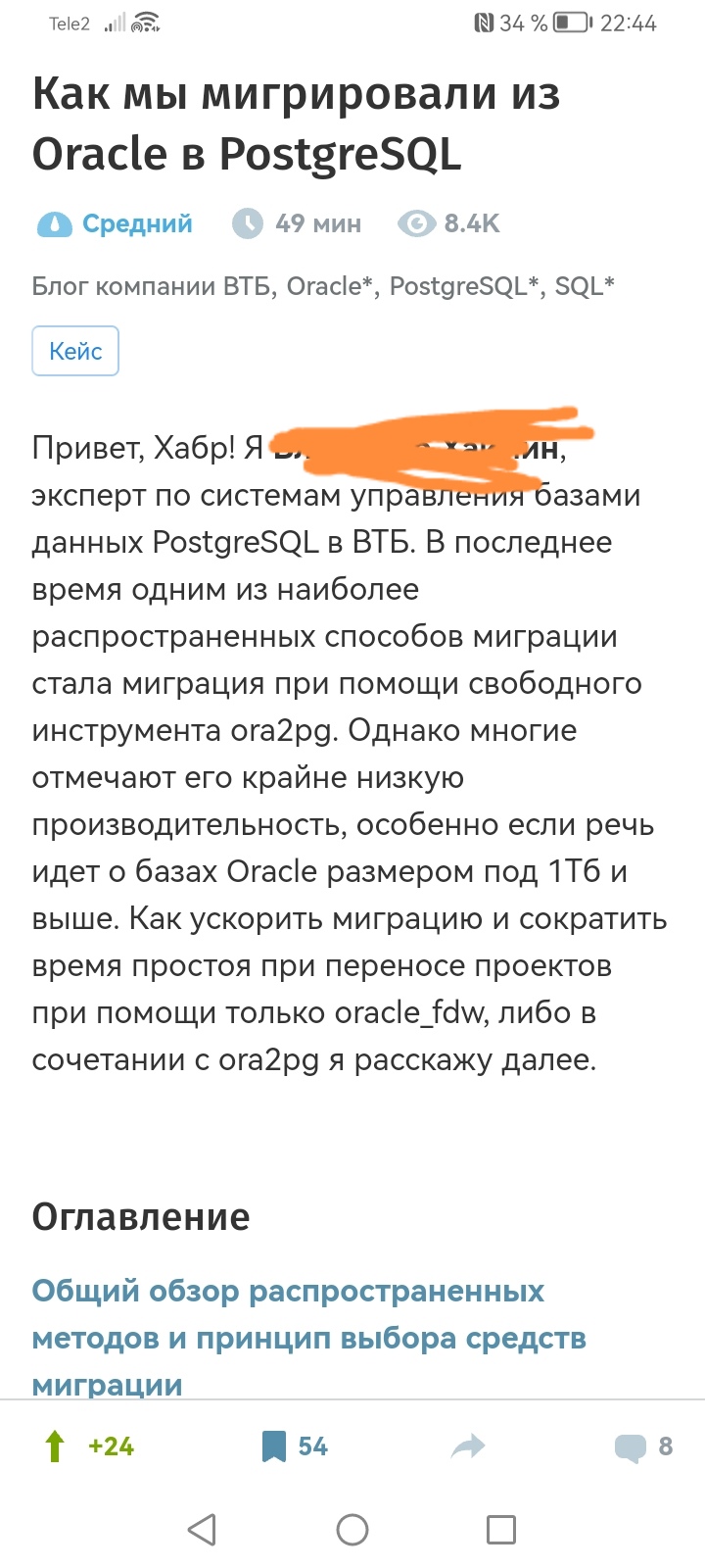 В общем в Яндексе набери: Как мы мигрировали из Oracle в PostgreSQL И там открой сохраненную копию. Должно сработать. ... |