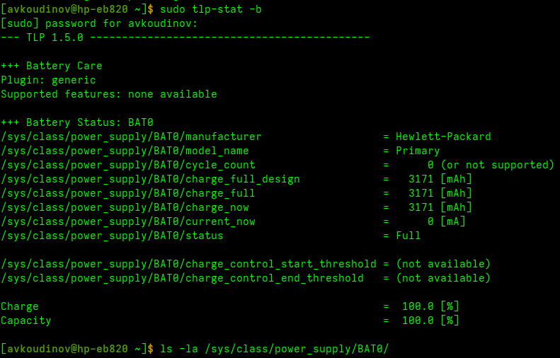 чет ui под убунту не ставится выполнил из строки Цитата [игнорируется] sudo tlp setcharge 60 80 Setting temporary charge threshold for BAT0: stop = 80 ... |
