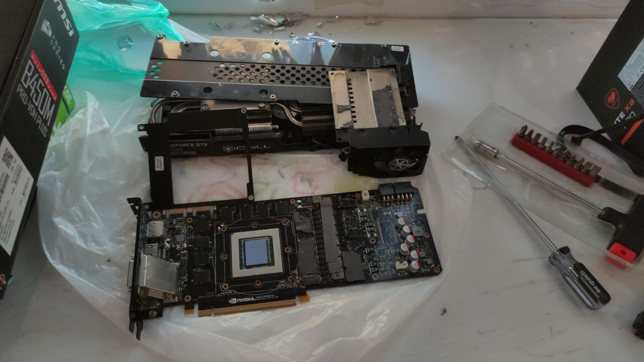 разобрал систему охлаждения полностью (раньше только снимал верх и менял термуху), на видеочипе ничего криминального не вижу. пока жду этого завтра: ... |