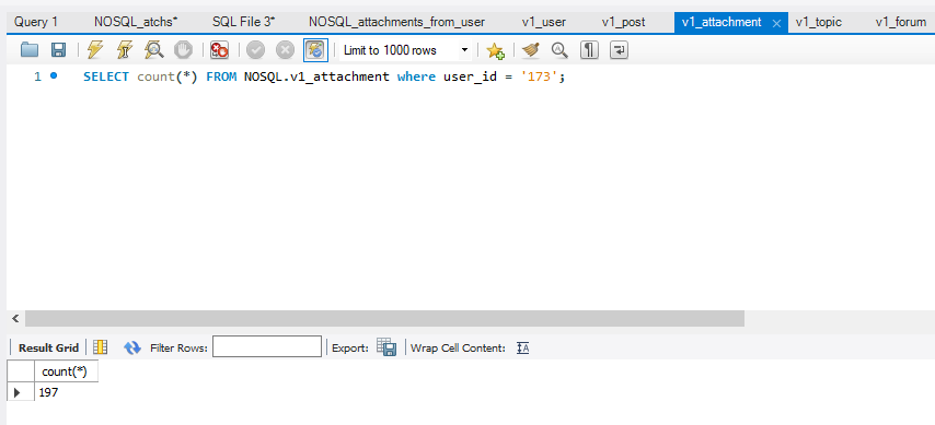 Горбатый ёж [игнорируется] Вот ещё вывод explain analyze Как только в читабельном виде отобразить... join Цитата [игнорируется] '-> Nested loop inner join (cost=473.95 rows=424) (actual time=0.235..3.066 rows=197 loops=1)\n -> Nested loop inner join (cost=325.38 rows=369) (actual time=0.154..1.790 rows=369 loops=1)\n -> Index lookup on v1_post using v1_post_user_id_idx (user_id=173) (cost=196.23 rows=369) (actual time=0.144..1.183 rows=369 loops=1)\n -> Single-row index lookup on v1_topic using PRIMARY (id=v1_post.topic_id) (cost=0.25 rows=1) (actual time=0.001..0.001 rows=1 loops=369)\n -> Index lookup on v1_attachment using v1_attachment_unq (post_id=v1_post.id) (cost=0.29 rows=1) (actual time=0.003..0.003 rows=1 loops=369)\n' Цитата [игнорируется] '-> Nested loop left join (cost=419.06 rows=212) (actual time=0.137..2.520 rows=197 loops=1)\n -> Nested loop inner join (cost=344.79 rows=212) (actual time=0.130..1.888 rows=197 loops=1)\n -> Index lookup on v1_post using v1_post_user_id_idx (user_id=173) (cost=196.21 rows=369) (actual time=0.093..0.869 rows=369 loops=1)\n -> Filter: (v1_attachment.`name` is not null) (cost=0.29 rows=1) (actual time=0.002..0.003 rows=1 loops=369)\n -> Index lookup on v1_attachment using v1_attachment_unq (post_id=v1_post.id) (cost=0.29 rows=1) (actual time=0.002..0.002 rows=1 loops=369)\n -> Single-row index lookup on v1_topic using PRIMARY (id=v1_post.topic_id) (cost=0.25 rows=1) (actual time=0.003..0.003 rows=1 loops=197)\n' ... |