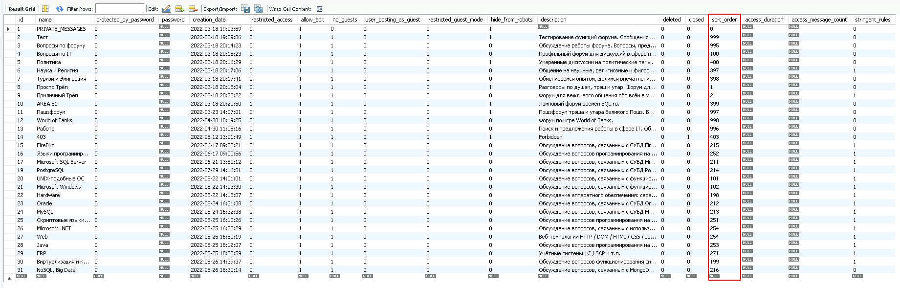 Их уже много и стало неудобно ориентироваться. Предлагаю их группировать или хотя бы сортировать по алфавиту Возможность принудительной сортировки присутствует, путем задания цифры. Я их сортирую, исходя из своего представления. По алфавиту, на мой взгляд, получится чушь, первым будет 403, потом Вопросы по ИТ, потом Пашэфорум ... |