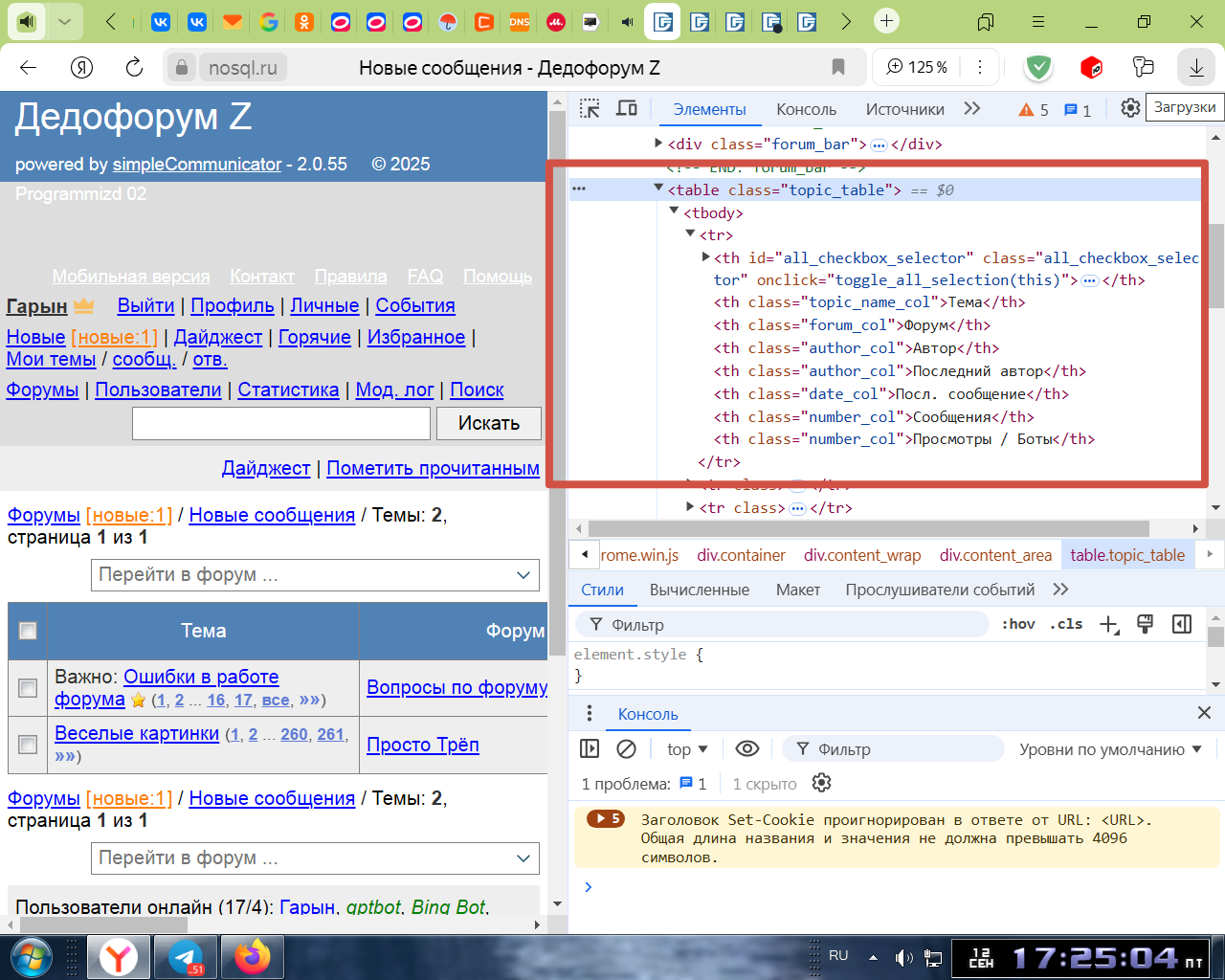 Посмотрел. Для гостей цсс тоже поддерживается. Соответственно если он слишком блльшой, сервер в какой то момент говорит иди в хуй:) например в профиле в поле "информация" есть проверка на кол-во символов , вроде около 3000... а в Поле ЦСС нет проверки , и тупо отсекается лишнее в конце поля, и получается не законченный ЦСС, а хрень незакконченная .... ( это мои предположения....) ... |