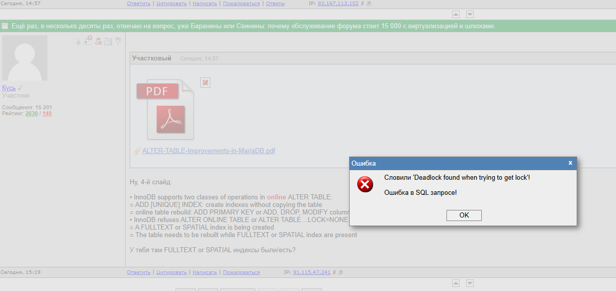 Решил воспользоваться удобным интерфейсом, а мне пишет, что СКЛ еррор. Это фича новая? ... |