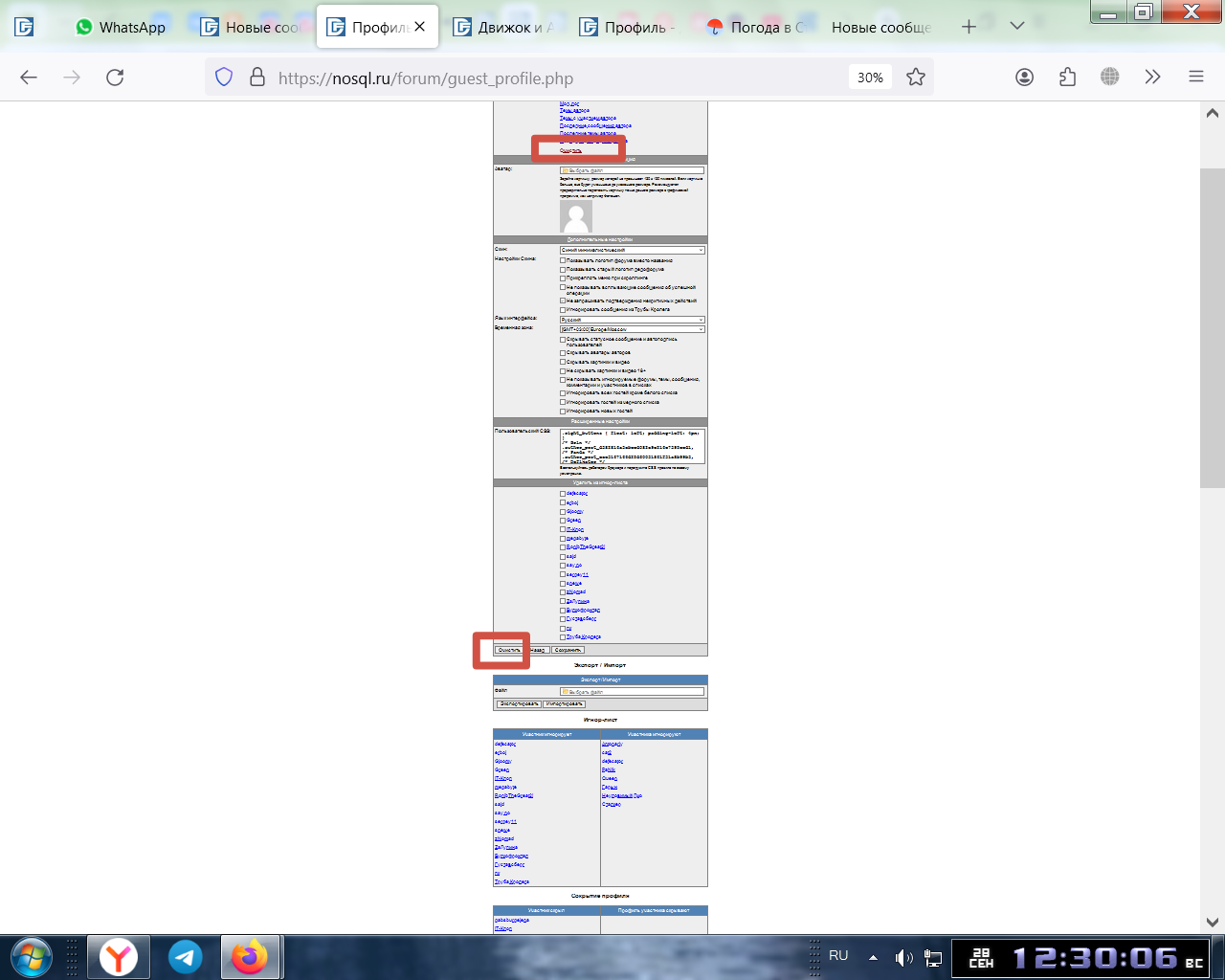 Gloomy [игнорируется] Посмотрел коменты в коде. Очистка очищает только ник, чтобы тебя как гостя больше никто не видел. Все настройки остаются, ибо это твои внутренние предпочтения. Нет смысла их очищать чтобы потом выставлять заново. А типа пого гостем 1 я этих игнорю а под гостем 2 нет, это гарынство какое то. одна вот тут : другая ( их там две ) в профиле ГОСТЯ они делают одно и то же? 2. а если нажать "Очистить" в профиле у зареганного Юзера, что произойдёт? (что очистится?, боюсь нажимать ) ... |