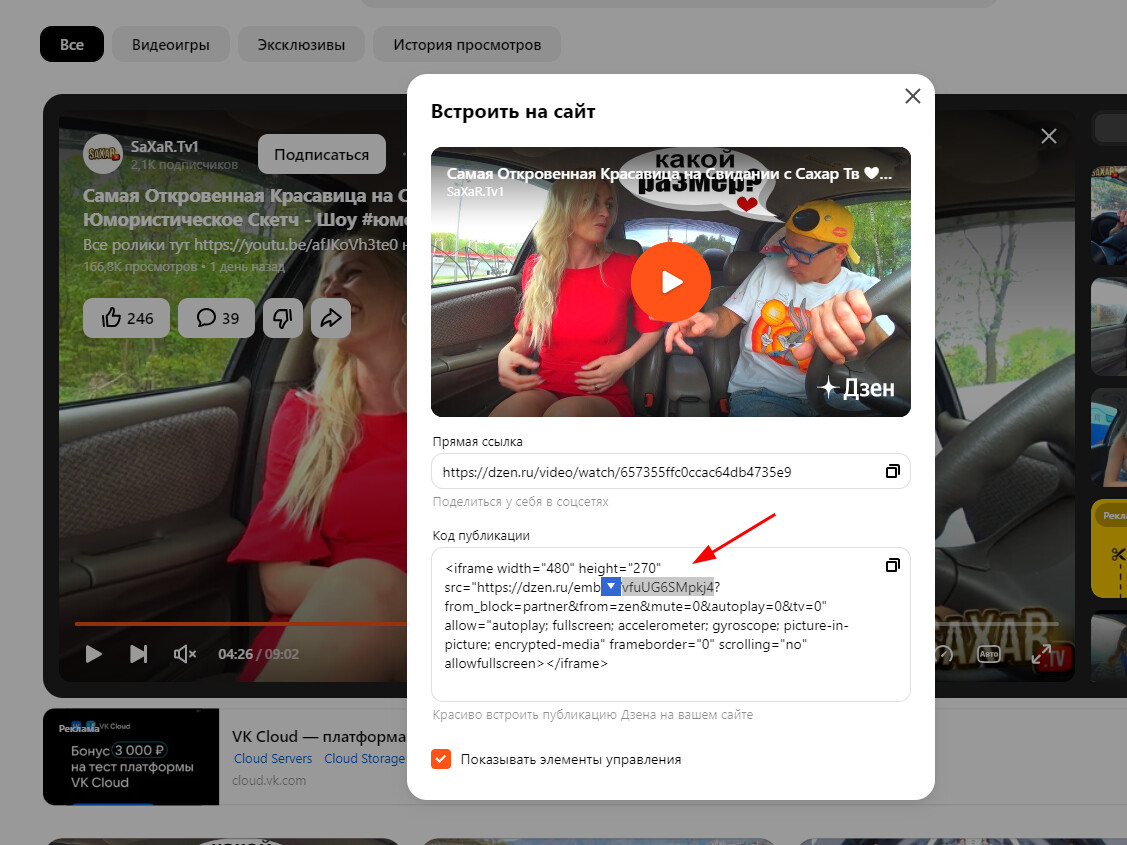 Вот это vfuUG6SMpkj4 нужно вставлять в тэг Яндекс Дзен просто установи расширение и оно все сделает за тебя ... |