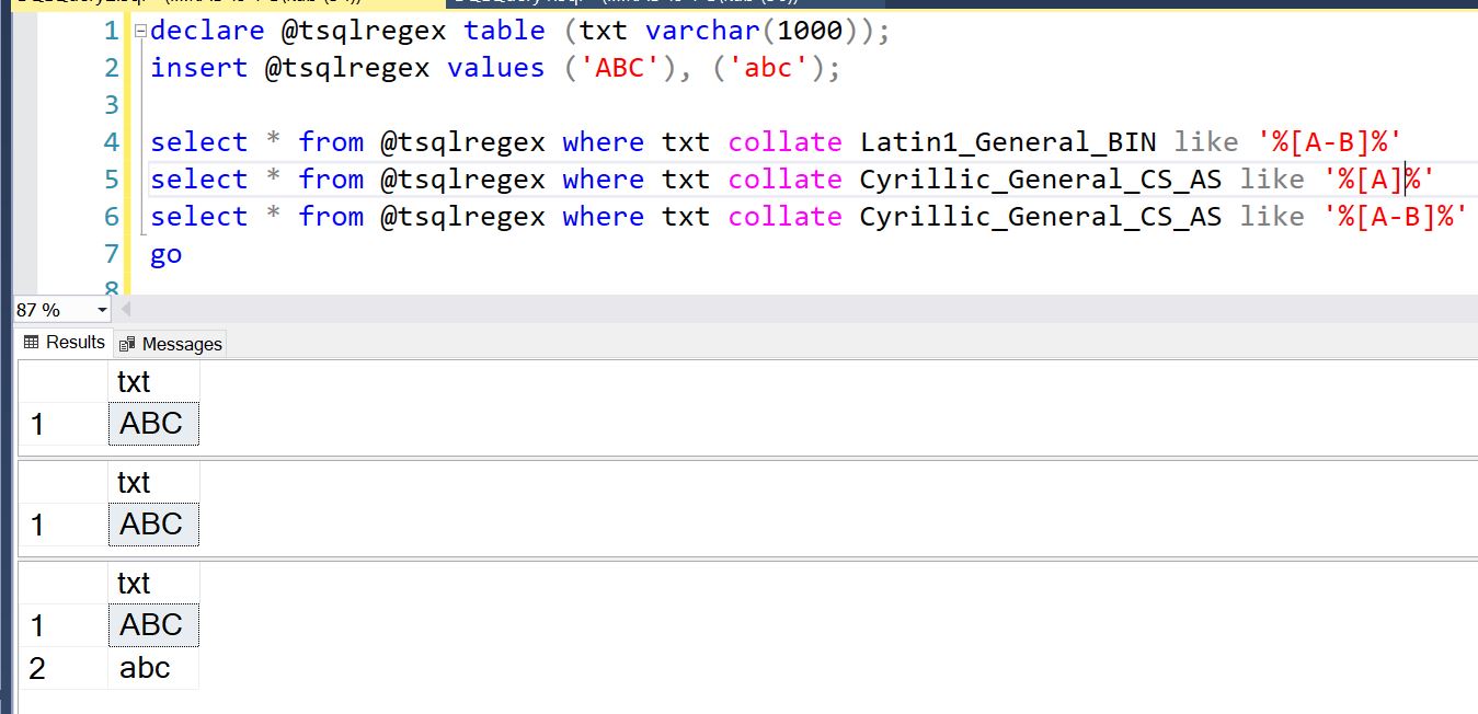 T-SQL collate в регулярках