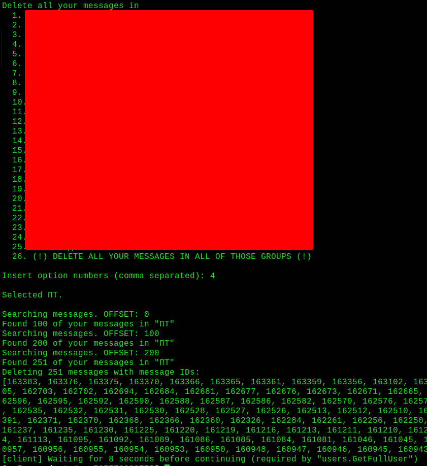Как удалить все свои сообщения в телеграм в группе, в канале, в чате (UPDATED)?