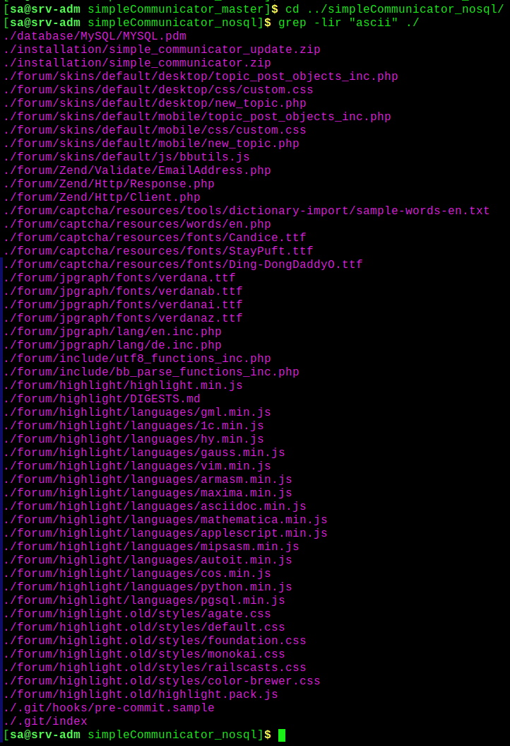 2 файла нашлись где ascii касается фичи кролля, это ошибка моей сихнронизации. Осталньное просо ascii ... |