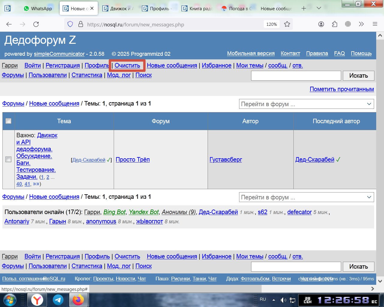 Движок и API дедофорума. Обсуждение. Баги. Тестирование. Задачи.