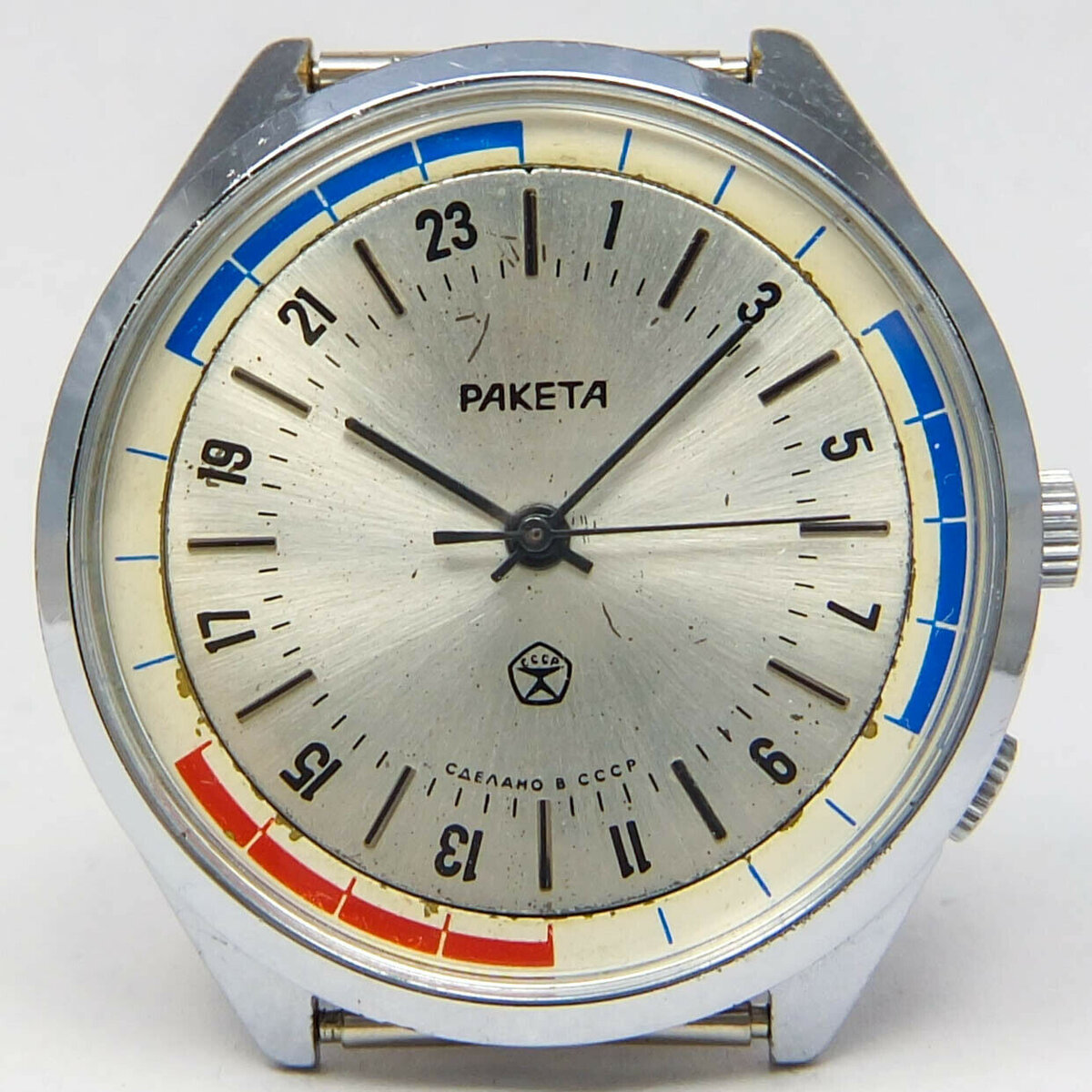 Настоящий 24-часовой циферблат был реализован в нашем ленинградском механизме часов "Ракета". ... |