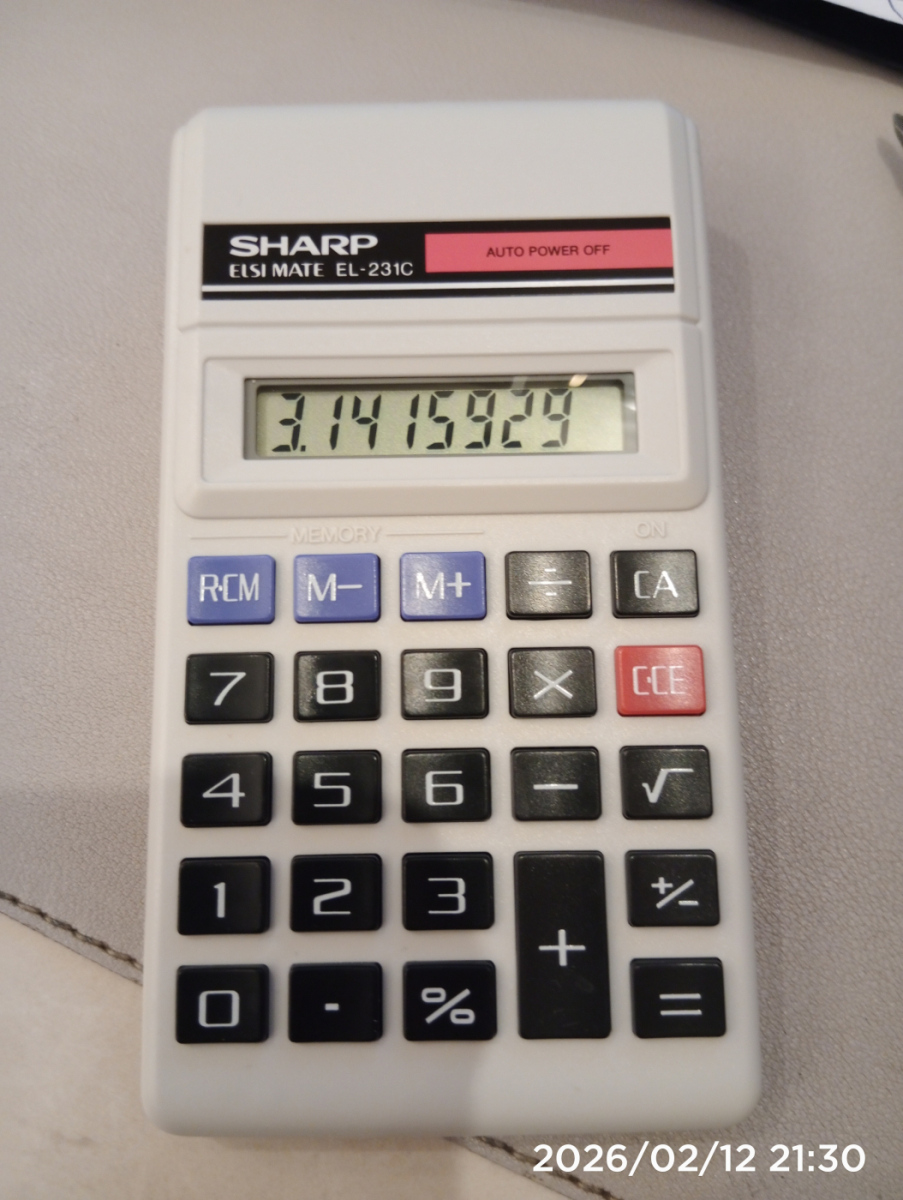 Пришел очень интересный кальк Sharp elsi mate el-231c. Реально из 80-х. Сделан на чипе, а не "капельке" как сейчас модно. Собран в Тайване, одноко чип и даже батарея(!) сделаны в Японии. До сих пор работает и ничего не потекло. Чудеса! Оценочно год выпуска этого калькулятора 1986-1988 годы. Но до сих пор продаются и прекрасно работают. На фото - плата с батареей и пример быстрого вычисления числа Пи как 355/113. Эта формула предложена китайским математиком и широко использовалась почти 1000 лет. ... |